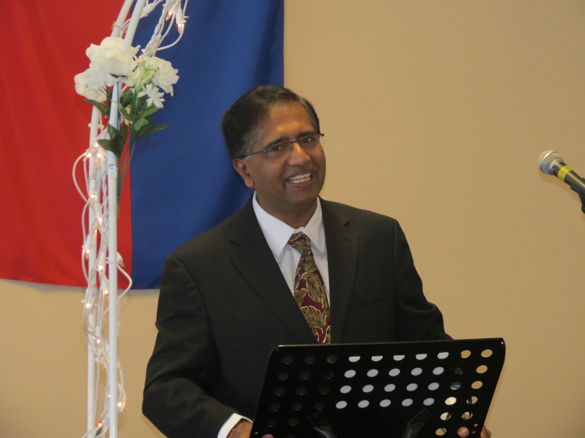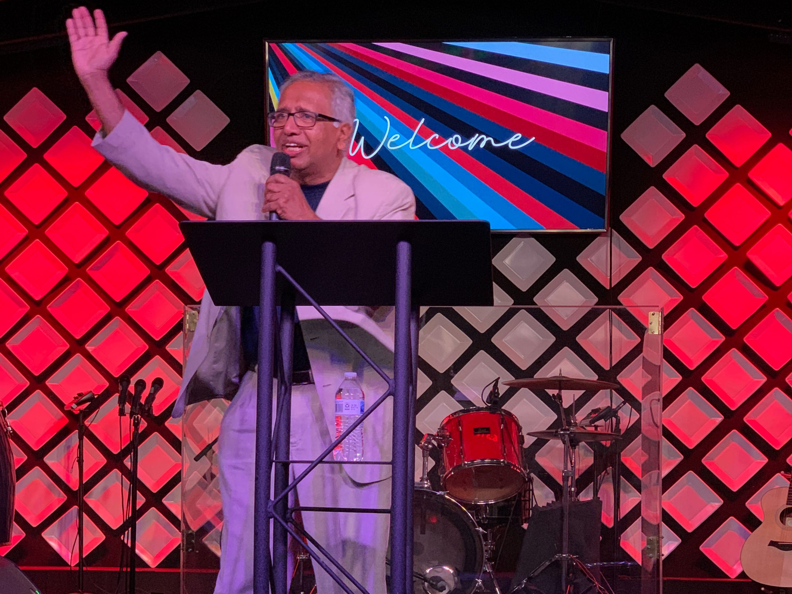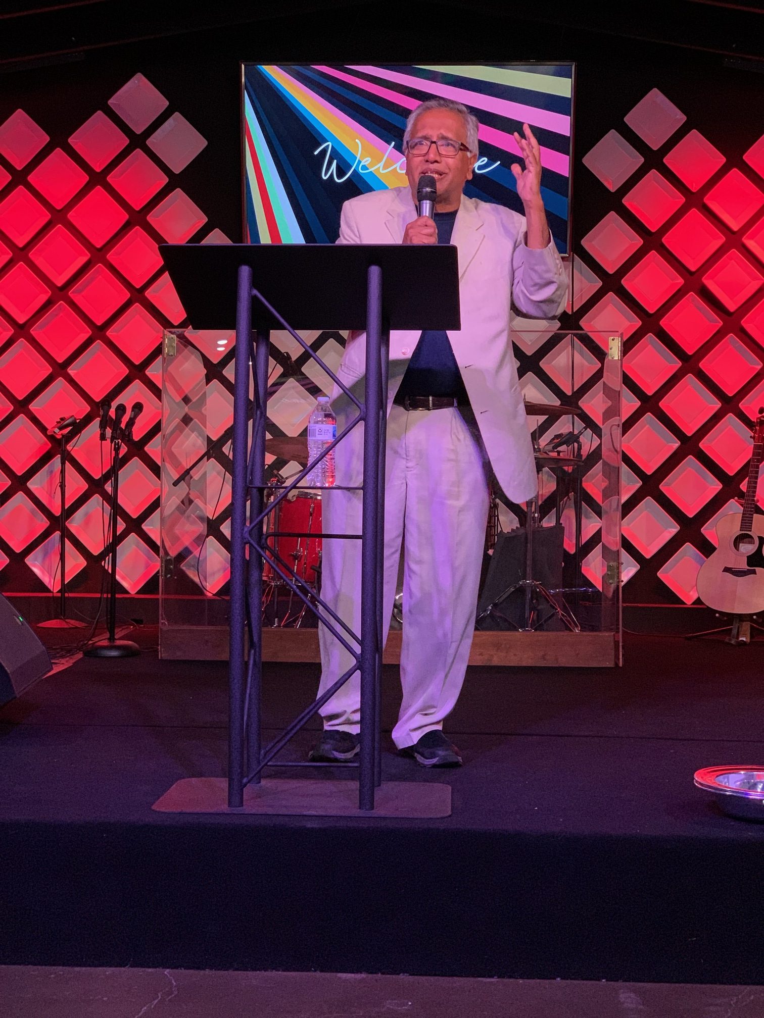 Pastor Mathew Jacob preaching on the language of the Holy Spirit at the Gateway Christian Center